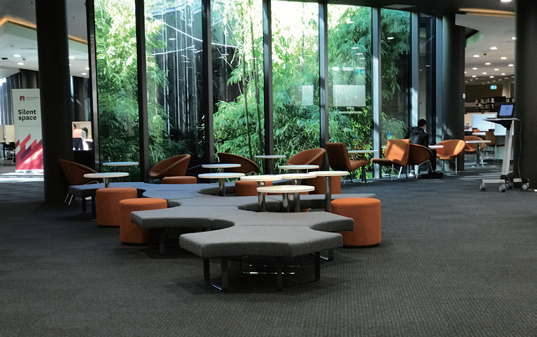 大学的基础设施十分舒适。我最喜欢的学习区域就是学生中心和图书馆。在学生中心,设计出了许多单人、小组,各式各样的学习区域,还配有微波炉、沙发、躺椅等设施,非常适合学习疲倦之后小息一下。在图书馆也有各式大大小小的学习区域。除此之外还有手机充电站、云打印区域。在二楼和三楼的入口附近,还可以凭借学生开使用电脑。