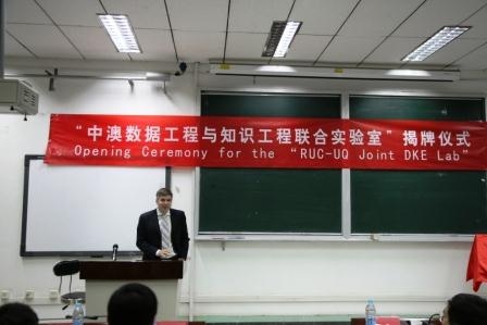 on the morning of november 29, the opening ceremony of renmin university of china and the university of queensland to be lab on data and knowledge engineering research was held in the information building academic reporting hall of four layers. yuan wei executive vice president attended the meeting and delivered a speech. assistant principal, the school discipline construction xiaoqun wang director of technology, scientific bureau, deputy director of the moufeng, international exchange, deputy director of the cheng xin, cultivation yanli li, director of the office of graduate school, head of the department and information institute, wang shan, vice president of the professor, secretary of the orange lam, left beautiful cloud, vice secretary of wang fuyin all attended the opening ceremony. national "one thousand project" entrants xiaofang zhou director professor employed for "joint laboratory". opening ceremony presided over by a dean professor xiao-yong du information.