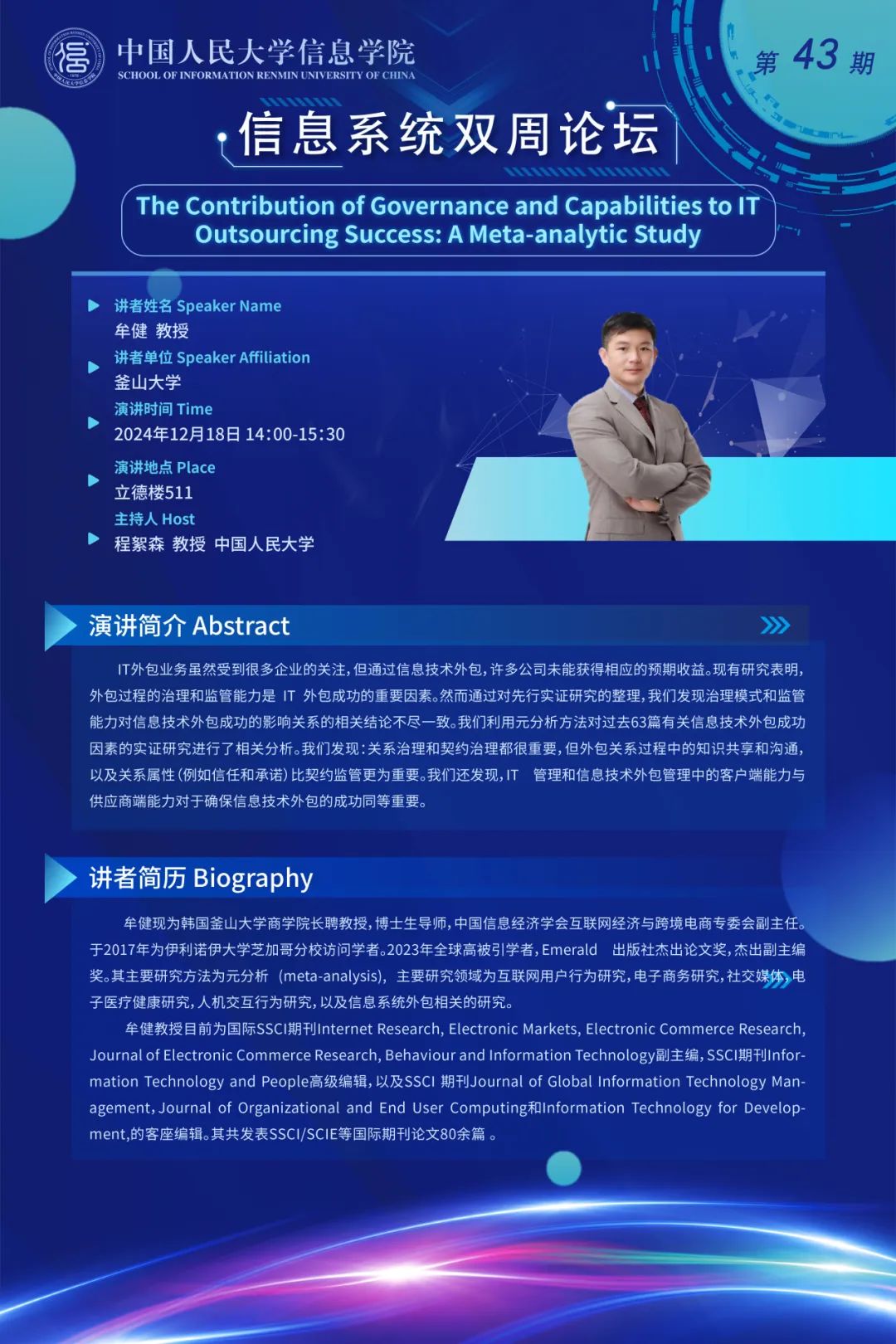 讲座题目:the contribution of governance and capabilities to it outsourcing success: a meta-analytic study