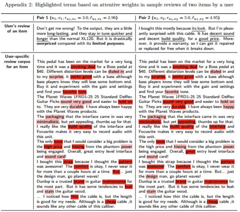 用户评论反映了个人体验和偏好,而物品描述则侧重于产品特性和品质。通常可以预期,用户更有可能在在线客户评论(ocrs)中对那些对他们来说更为重要的产品特性进行评论。因此,了解用户在评论中提及的产品方面对于理解其在产品方面的偏好以及做出更准确的评分预测非常有价值。现有的从评论中提取方面的方法通常依赖于主题建模,这种方法无法通过学习方面与评分之间的深层关联关系来识别对评分预测有价值的方面。在方面感知交互模块中,我们设计了一个基于双层门控的机制和一个自注意力机制,以从上下文中提炼出最相关的方面,并突出不同方面的相对重要性。
