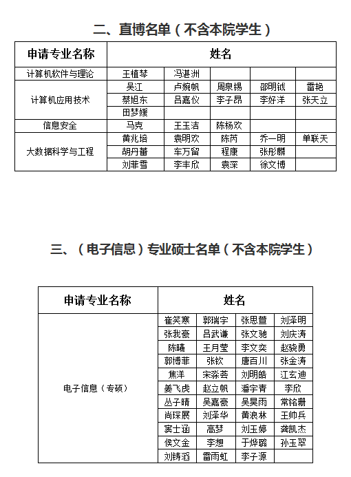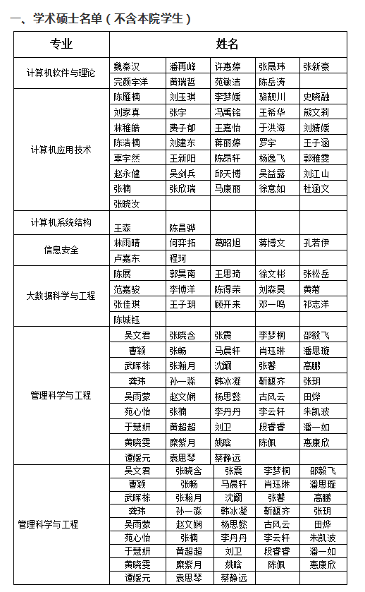 以下是2020年信息学院优秀大学生夏令营营员名单,请确定来参加夏令营的同学于2020年7月6日下午5点前发邮件到wpp_ruc@163.com确认参加本次夏令营,若6号下午5点前没有收到确认邮件,则视同放弃本次营员资格。同学们发邮件时,请务必按此署名(邮件主题:姓名 所申请的专业 参加信息学院夏令营 直博/学术硕士/专硕),确认邮件还需要附上: