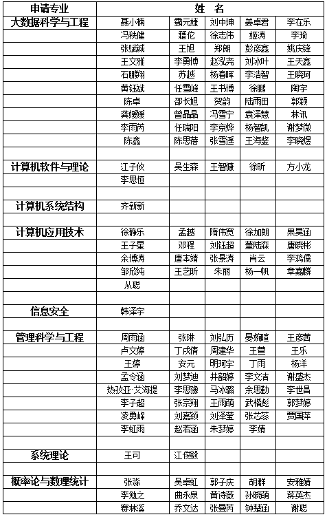 三、申请专业硕士(软件工程)名单(不含本院学生)