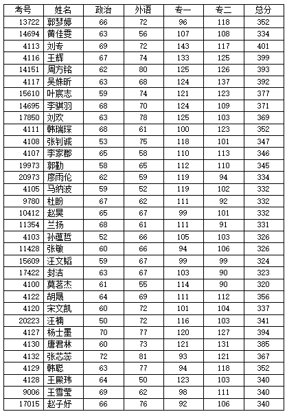 工学硕士:英语50,政治50,专业一90,专业二90,总分320