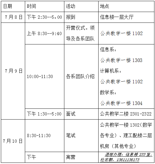 9、夏令营活动需全程参加,除特殊情况外,不得请假。