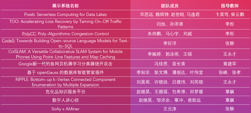 | 16:00-17:30 | 学生系统展示、优秀系统评选 |