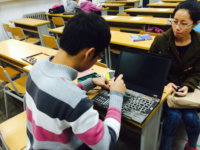 “蓝天圆梦”电脑义诊活动是计协在校际学生工作活动中相当重要的一部分。电脑义诊活动开展在课堂教学之外,意在锻炼计协成员们的动手实践与随机应变能力,一方面为同学们提供了发挥专业特长,灵活运用所学专业知识的平台,另一方面更是增进了同学之间的友谊,培养干事们为大众服务的奉献精神。每周三下午不到2点,技术部部长贾政雄总是会带领技术员同学们一起来到公教二楼2115教室,准备好专业维修工具和服务登记表,记录并解决同学们在计算机方面遇到的问题。无论是重装系统,清灰,解决开关机故障以及安装各种软件,计协技术部的同学们定能一一解决,让前来咨询的同学满意。