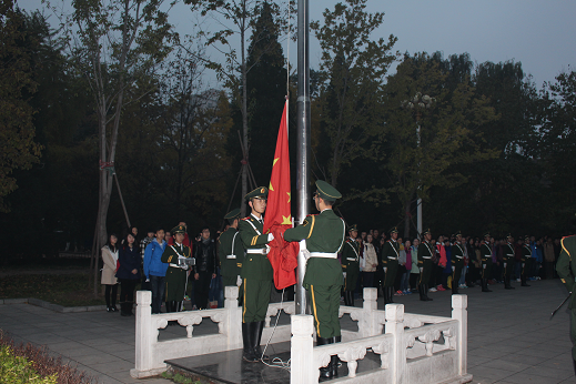 2015年11月9日,中国人民大学信息学院2015级本科新生在求是园举行升旗仪式。中国人民大学武警国防生国旗护卫队承担此次升旗任务,参加此次活动的有信息学院、国学院和农业与农村发展学院的同学。