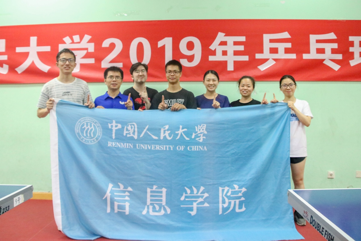 2019年6月9日,中国人民大学2019年乒乓球团体赛在世纪馆北201室顺利举行。我院代表队一路凯歌,小组赛中战胜新闻学院、农发学院与理学院晋级八强,随后又击败商学院晋级四强。在半决赛中,我院选手发挥出色,大比分战胜历史学院。在决赛中,我院队员发挥稳定,不负众望,战胜马克思主义学院代表队成为本次乒乓球团体赛的总冠军。