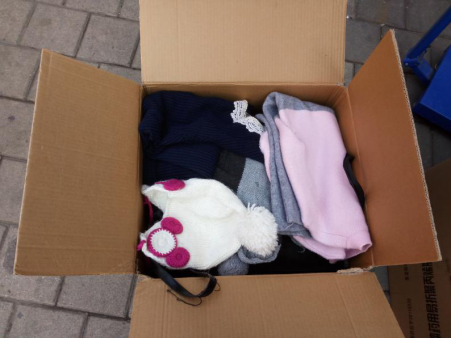 2016年11月3日中午,信息青协的成员们对衣物进行筛选和数量清点工作。他们将收集到的160余件衣物叠放装箱,共归纳四箱之多。其中大部分为棉服、毛衣,为西藏贫困人民带去温暖。青协成员们顺利将衣物寄出,他们为此感到自豪。