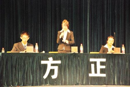 本次代表我院参加总决赛的辩手为三位2009级的同学,依次为王萌、晁怡、张驰。一辩王萌在立论中从内部属性和外部需要两个方面阐述大学教育应以精英教育为主。在攻辩环节中,我方二辩晁怡和三辩张驰指出了精英教育并不是对方辩友提出的面向少数人的,并且精英教育并不是仅仅以培养精英为目的而是着重于对学术的深度钻研的教育模式,同时,还强调被对方辩友忽略掉的辩题中的范围——大学;在自由辩论中,我院三位辩手把握着场上的主动权,指出了大众教育和精英教育是可以并存的,将对方的阵脚彻底打乱,而在最后的总结陈词中,三辩张驰先指出对方辩友在今天辩论中对概念的偷换和一些概念性的错误,之后总结我方的观点,最后以诗化的语言为本次辩论赛画上了一个圆满的句号。