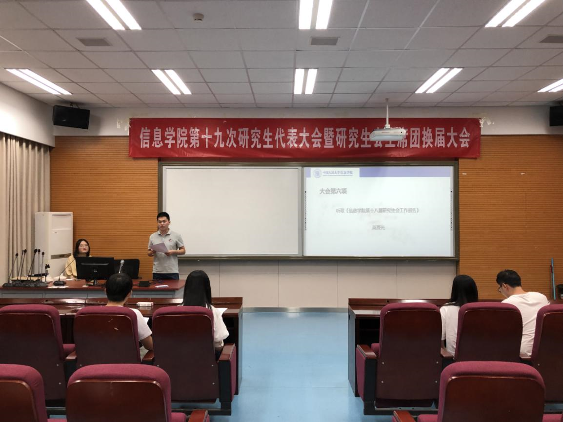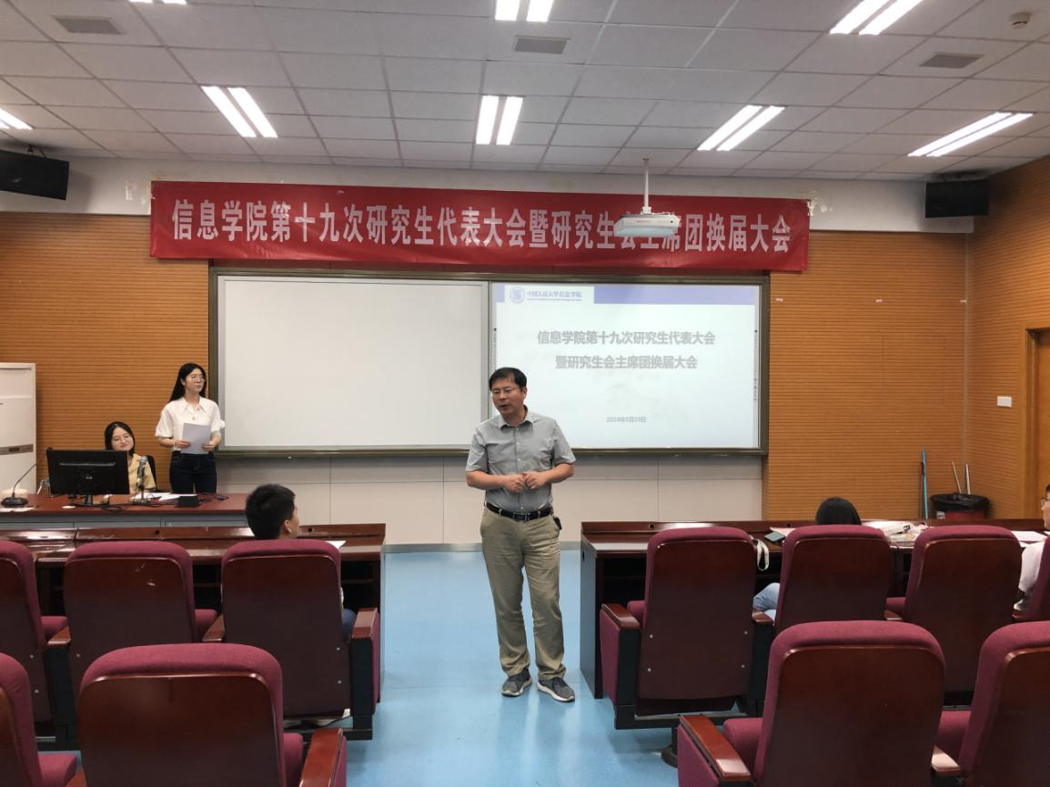 2019年9月19日,我院第十九次研究生代表大会于信息楼四楼报告厅圆满召开。信息学院党委副书记张国富老师、团委书记王晓彤老师、37位研究生代表共同出席了本次大会。
