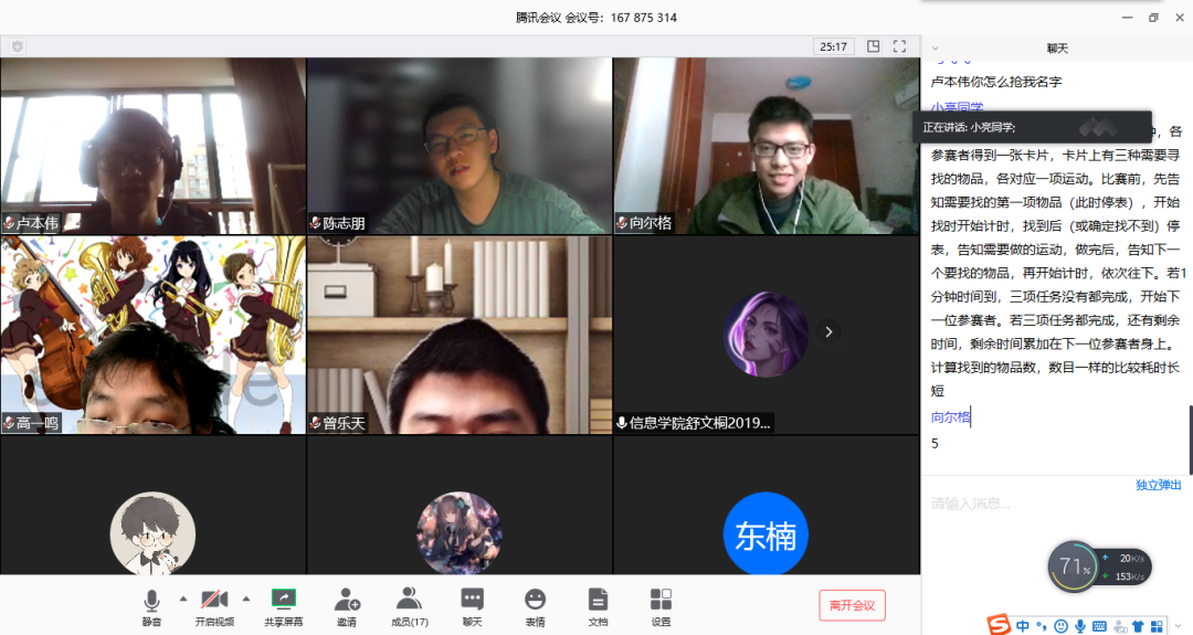 4月11日下午,信息学院分团委学生会体育部组织我院18级、19级各班学生,在腾讯会议与微信平台举办“强身健体,同心抗疫”线上运动会。本次线上运动会以班级为单位,结合个人报名赛,旨在鼓励学生通过体育运动增强身体素质,在疫情期间丰富居家生活。