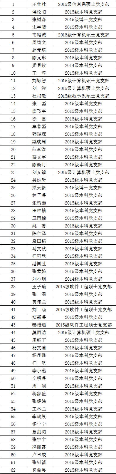 本期党章学习小组有73人报名。最后,经过综合评定及党总支委员讨论,62人通过党章学习小组,通过率为85%。