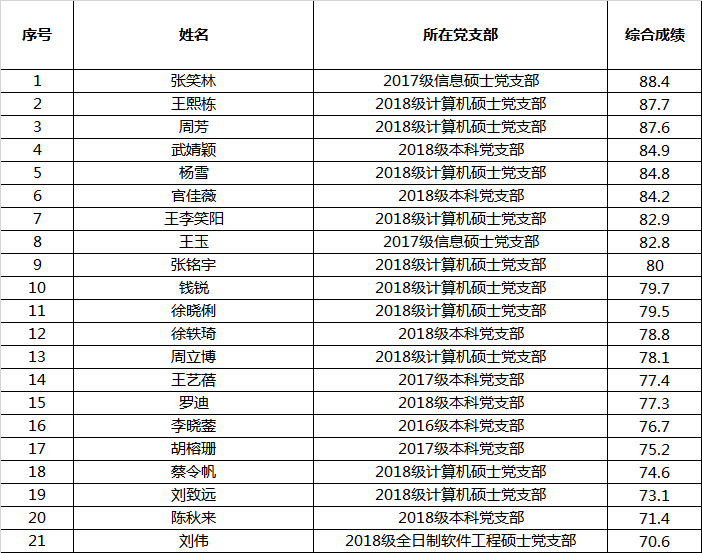 本期党校共有29人通过党校学员资格审查并参加院党校学习,最终21人成绩合格,现将通过名单公示如下。