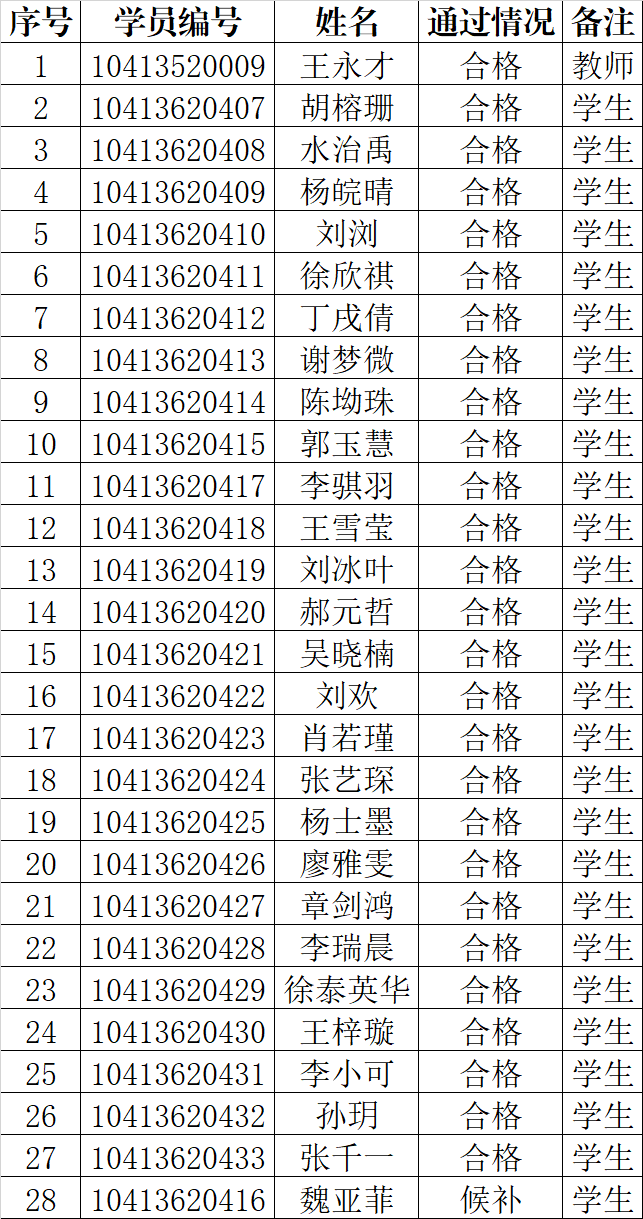 为认真贯彻发展党员工作“控制总量、优化结构、提高质量、发挥作用”的方针,进一步加强对发展党员工作的民主监督,严把发展党员入口关,根据有关要求,现对信息学院已参加学校党校第36期学生发展对象培训班暨第35期教工发展对象培训班培训、综合考核合格的26名学生发展对象、1名教师发展对象,以及1名候补学生发展对象进行公示,以听取党内外群众意见。