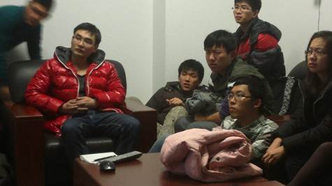 (图2 党员和积极分子以宿舍为单位认真学习十八大材料并交流经验)