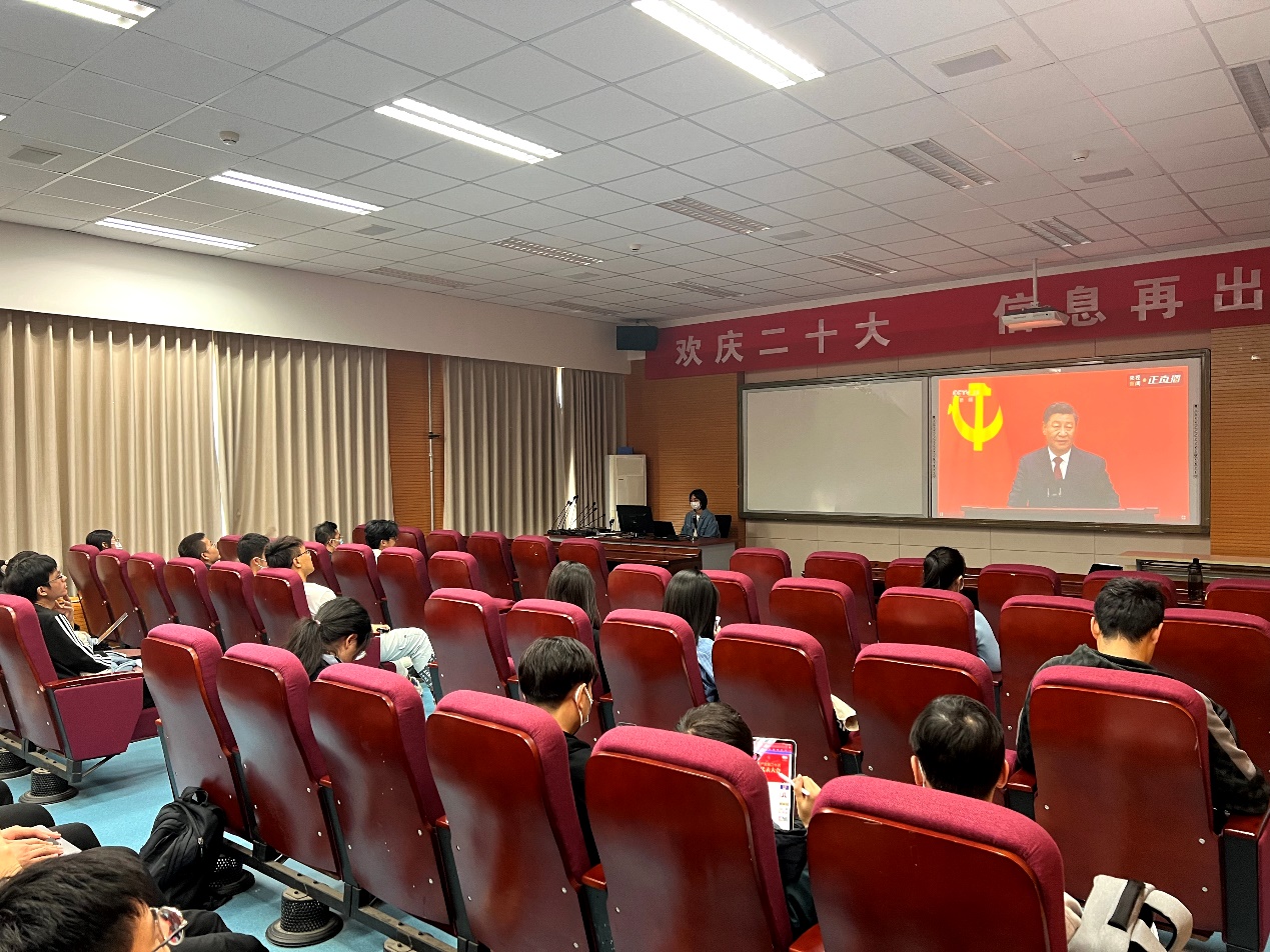 信息学院党委组织师生在信息楼四楼报告厅集体观看中国共产党第二十届中央政治局常委同中外记者见面会的现场直播,深入学习习近平总书记的重要讲话。