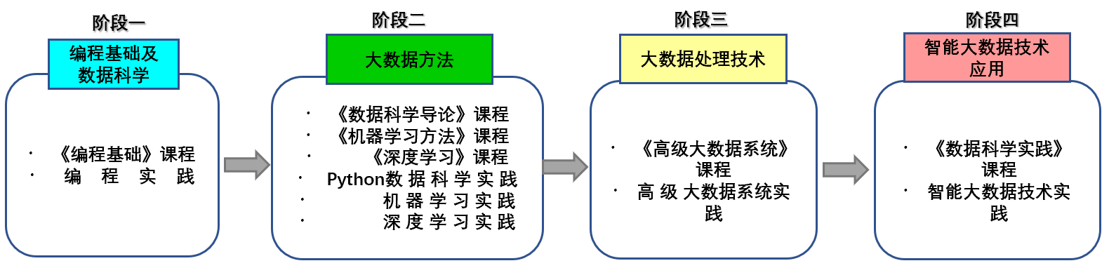 信息学院开设的“智能大数据技术”荣誉辅修项目旨在通过一系列高水平课程、基于国家重点研发计划重点专项的研究实践和毕业论文环节,培养“智能大数据技术”领域的高水平人才,为研究生阶段的继续深造打下坚实的课程和实践基础。