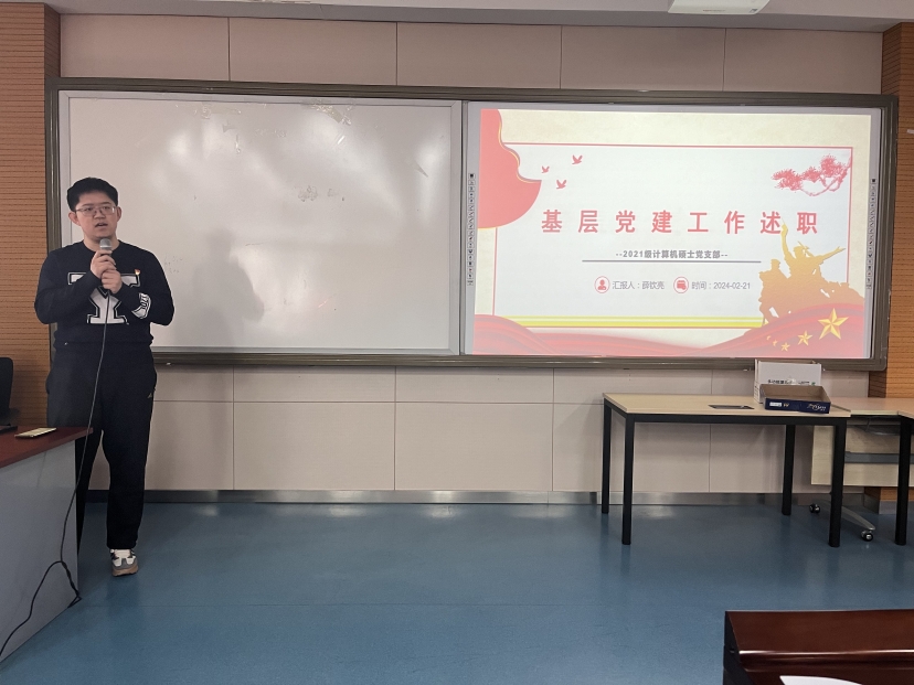 计算机系教工党支部等15名党支部书记现场述职,其他党支部书记进行书面述职。首先,由教职工党支部书记述职。计算机系教工党支部书记陈晋川、党政教辅党支部书记陈旺以学习贯彻党的二十大精神为主线,紧扣立德树人根本任务,介绍了本年度支部建设主要做法,查摆的问题以及下一步思路举措。随后,13个学生党支部书记依次述职,重点介绍了支部建设情况、党员发展情况、“三会一课”建设情况,反思了支部建设存在的主要问题,提出了下一步工作计划。