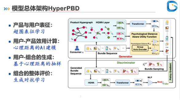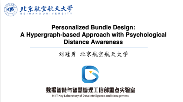 第三个报告由来自北京航空航天大学经济管理学院的刘冠男副教授分享,报告题目为《personalized bundle generation: a hypergraph-based approach with psychological distance awareness》。该研究深入探讨了如何利用超图理论来构建一个统一的框架,以处理用户、商品和捆绑包之间的复杂关系,并在此基础上实现个性化推荐。报告特别强调了心理距离在个性化捆绑推荐中的重要性,提出了一种新的超图模型,该模型能够有效地捕捉用户与商品之间的心理距离,从而提升推荐系统的准确性和用户满意度。