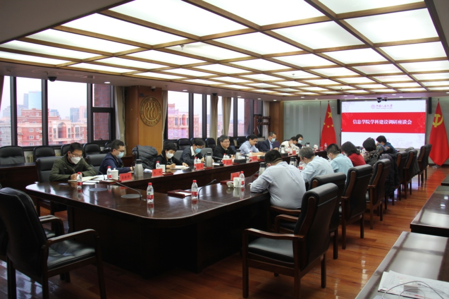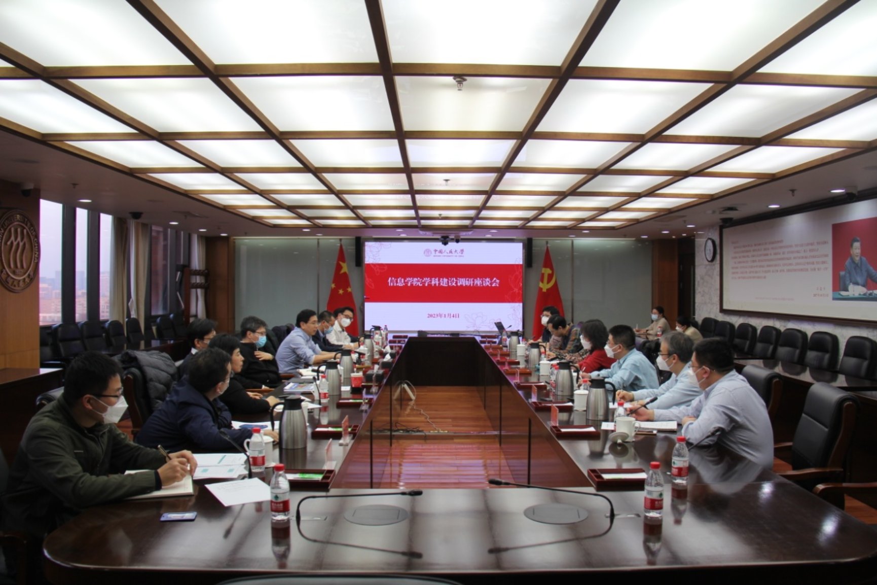 2023年1月4日下午,中国人民大学信息学院学科建设调研座谈会在明德主楼13层第一会议室召开。中国人民大学校长林尚立、党委副书记郑水泉出席座谈会并讲话。校长助理、理工处处长杜小勇参加会议。信息学院党委书记陈红,院长文继荣,副院长张孝汇报工作。