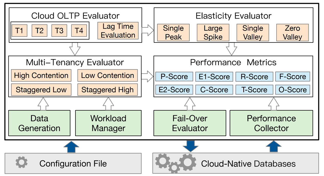 云原生数据库基准cloudybench面向云计算微服务场景构建,并针对云原生数据库弹性、多租户、数据一致性、成本优化等新特性分别设计了动态可变的负载模型和细粒度的性能指标,研究论文通过模拟真实云场景业务测评对比了主流云原生数据库,发现了不同场景下云原生数据库相比于传统rds服务的优劣势,讨论了未来云原生数据库的发展方向。
