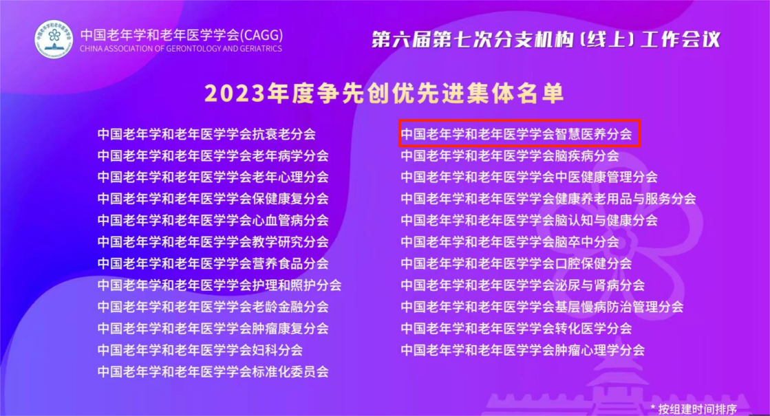 据介绍,中国老年学和老年医学学会(以下简称总会)下的分会分支机构已经多达60余个,全体会员8000多名。为了促进分支机构健康规范发展,中国老年学和老年医学学会2023年继续在分支机构中开展“争先创优”活动。智慧医养分会凭借出色的表现,从众多分会中脱颖而出,被总会评为“2023年争先创优先进集体”。与此同时,智慧医养分会主任委员左美云教授凭借在工作中的学术拓展和贡献,荣获了“争先创优先进个人”称号。这一荣誉的获得,表明了智慧医养分会在左美云教授的领导下获得了总会和社会的认可,表现出智慧医养分会在智慧医养领域具有很好的影响力和专业水准。
