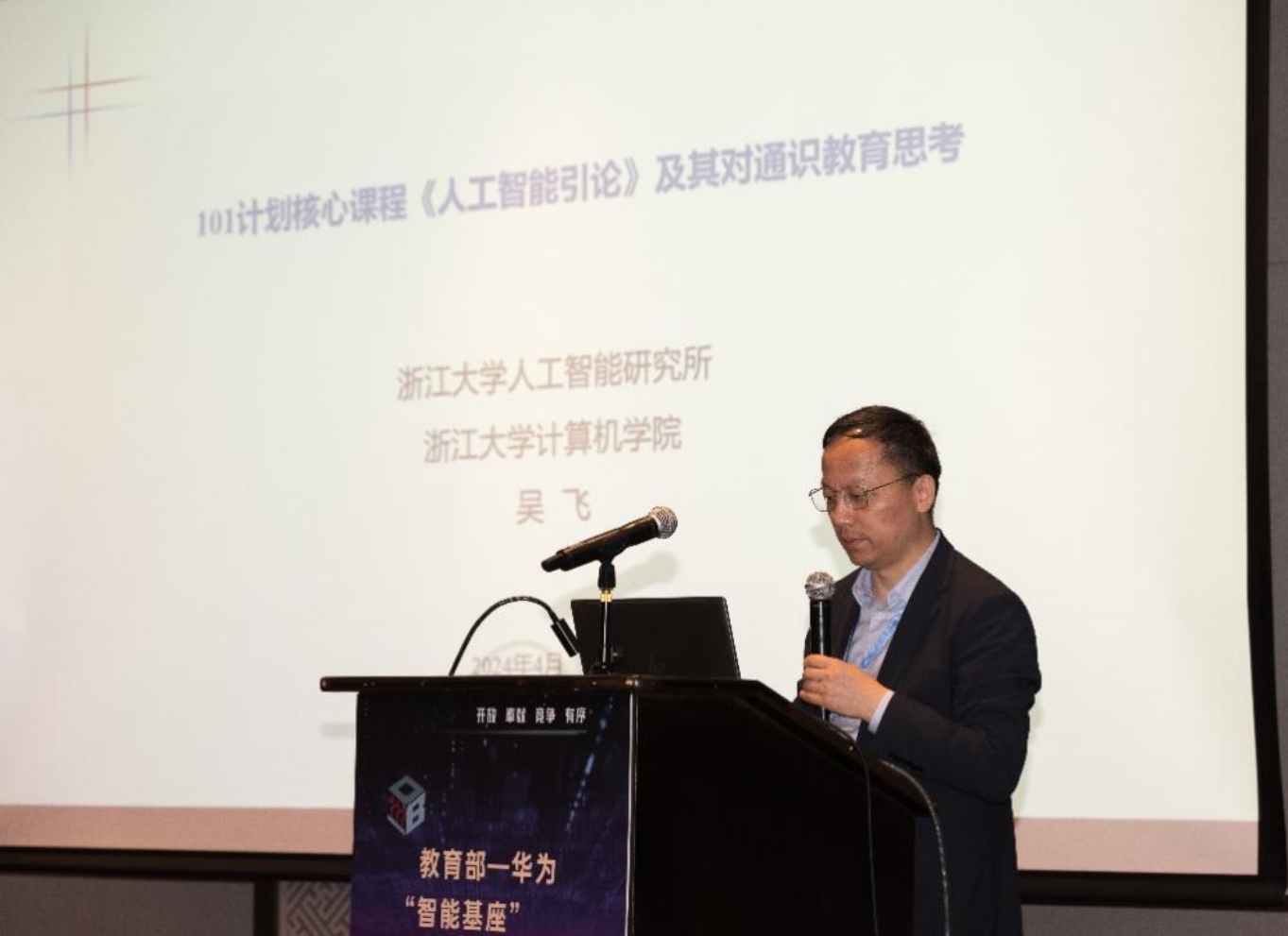 浙江大学计算机学院党委书记吴飞教授以“101计划核心课程《人工智能引论》及其在通识教育中的思考”为题进行了精彩的分享。他介绍了该课程的发展历程及其深刻感悟,并详细讲述了课程每一章的核心内容。在大模型热的背景下,吴老师认为,建立从通用到专业的领域基座模型是极其重要且有价值的,强调锤炼垂直领域大模型的“燃料”需要是教科书级的高质量语料。此外,吴老师还分享了浙江大学与高等教育出版社、阿里云计算有限公司及华院计算共同研发的人工智能领域大模型“智海-三乐(wisdombot)”的合作成果。