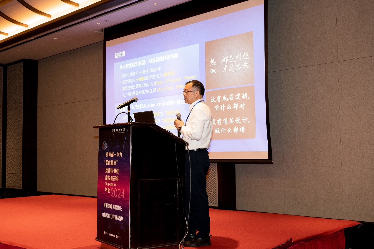 在致辞中,杜小勇教授强调了建设虚拟教研室是为了响应教育部新时代教育改革的需求,这一重要举措旨在通过资源共享和合作研究,推动数据库教学的全面提升。他表达了希望通过本次年会,加强数据库领域的专家学者间的经验交流,并共享丰富的课程资源,以促进该领域的进一步发展。