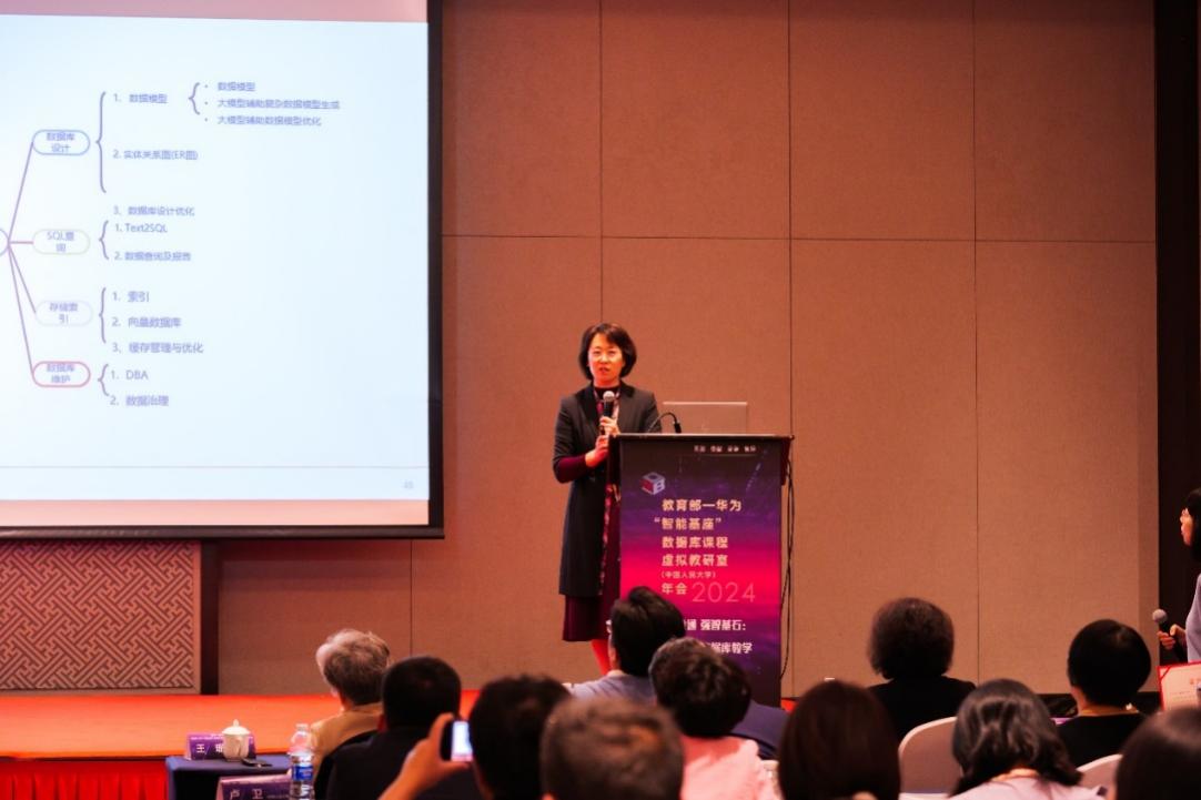 数据库虚拟教研室大模型助力数据库教学工作组组长、华东师范大学王晓玲教授以“大模型赋能数据库教学:从理论到实践”为题作了大会报告。她系统地介绍了大模型在数据库教学中的应用,包括技术调研和实践探索。王老师首先分享了大型语言模型(llm)在以下四个方面的赋能技术和进展:复杂数据模型的生成与优化、text2sql查询与高级数据分析、数据存储与学习型索引、以及数据库运维与智能dba。基于这些技术进展,她还介绍了虚拟教研室组织的首次llm4db教学实践比赛的参赛情况,并对未来的工作内容进行了展望。