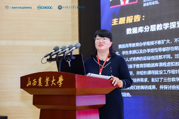在大会专题报告环节,虚拟教研室实验实训组组长大连海事大学张俊教授、竞赛指导组副组长东北大学聂铁铮副教授、课程建设组副组长中国人民大学陈晋川副教授、大模型赋能数据库教学组副组长西南大学李娅教授、会议程序委员会共同主席山西农业大学成丽君副教授依次作报告。张俊教授以“人工智能赋能数据库实验实训探索——以数据库设计为例”为题,介绍了利用大模型技术辅助数据库概念、逻辑与物理设计的教学实践。报告强调ai工具在提升学生实训效率、深化教学内容理解方面的积极作用,为数据库课程教学模式提供了新思路。聂铁铮副教授围绕虚拟教研室竞赛组织,回顾了数据库课程教学竞赛的成果与经验。他强调竞赛对促进教学改革、提升教师能力的重要价值,并提出规范化竞赛管理制度建设建议,为“以赛促教”机制的深化实施提供了可行路径。陈晋川副教授以“数据库分层教学探索”为题,介绍了基于广泛调研制定的三类教学大纲,适配不同类型高校的人才培养需求,并探讨数据库人才培养的发展趋势。李娅教授以“智慧教育背景下的数据库教学生态重构:课程改革与团队建设协同创新”为题,分享了智慧教育背景下的数据库课程改革实践。依托虚拟教研室平台,教学团队重构课程体系、革新教学方法,并通过教学大赛推动校内外团队协作。成丽君副教授以“‘双核聚融、四实驱动’实践育人体系的构建与实践”为题,介绍了山西农业大学软件学院结合“农业 软件”特色构建的育人模式。报告强调校企协同、德智融合的“双核”理念和“实践教学、基地、项目、能力”四实驱动机制,为应用型人才培养提供了创新路径。