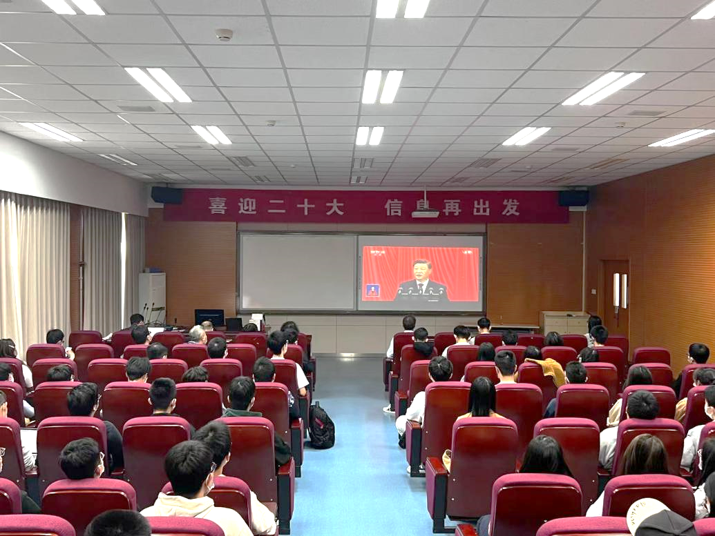 10月16日上午10时,中国共产党第二十次全国代表大会开幕会在人民大会堂隆重举行。信息学院、高瓴人工智能学院领导班子、信息学院党委委员以及两院全体新生党员在信息楼四楼报告厅集体观看党的二十大开幕会现场直播。